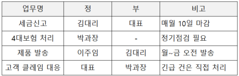 업무분장이라고 거창하게 시작할 필요 없습니다. A4 한 장, 간단한 표 하나면 충분합니다. 업무분장은 복잡한 ‘인사제도’가 아니라 "누가 어떤 업무를 하고 있는지 눈에 보이게 정리하는 것"입니다.